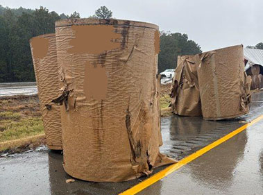*Material was damaged – material was in an accident while being transported, exposed to some water damage and soiling.  Material is being stored inside a trailer.