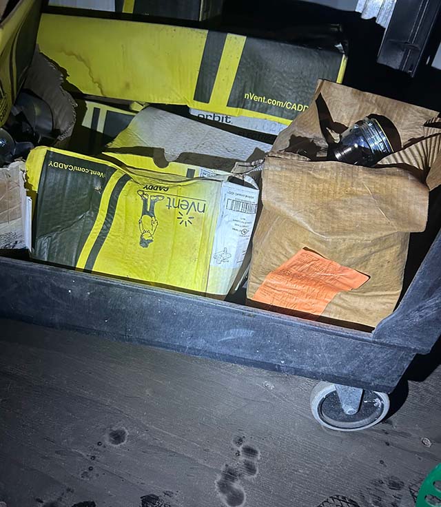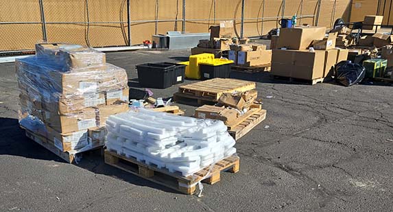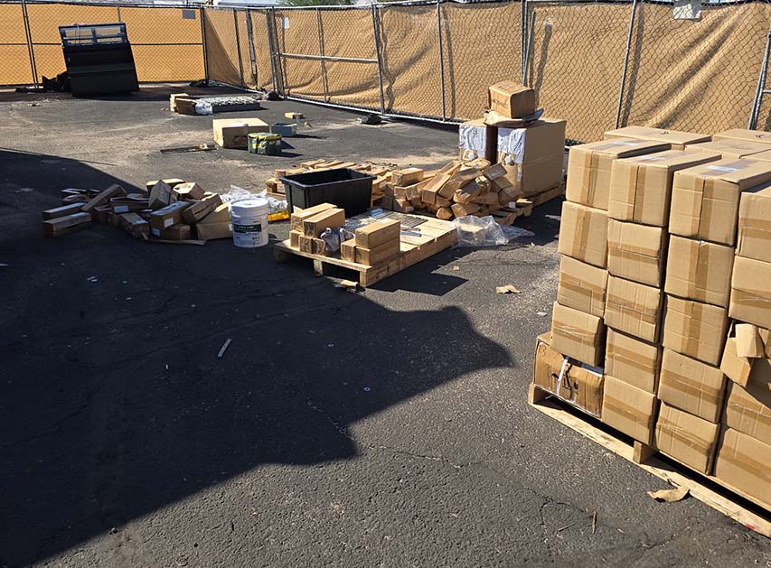 *Units were damaged – material was being stored in containers when a storm drain backed up and material was submerged in water for an estimated 2-3 hours. Material was removed from container after damages. Now material is stored outside and inside containers. Damages occurred in September 2025 and pictures are from December 2025.